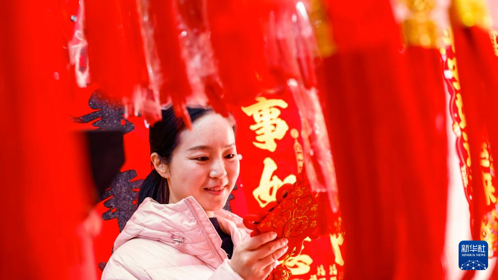 1月28日,市民在江苏省南京市一卖场选购新年饰品。