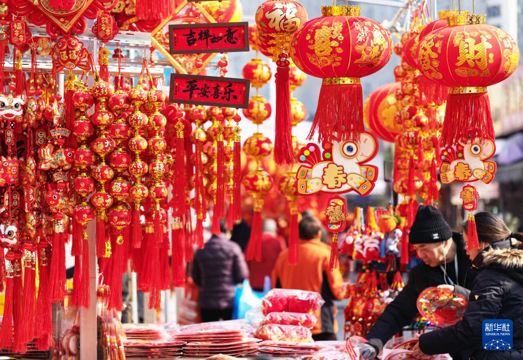 春节临近,各地市场红火,众多市民备年货、赶市集,喜迎新春。
