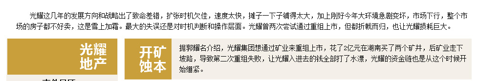 多家媒體報道稱光耀地產資金鏈斷裂瀕臨倒閉 |