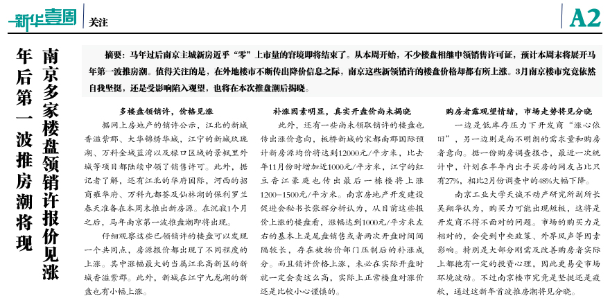 南京多家樓盤領(lǐng)銷許報(bào)價(jià)見漲
