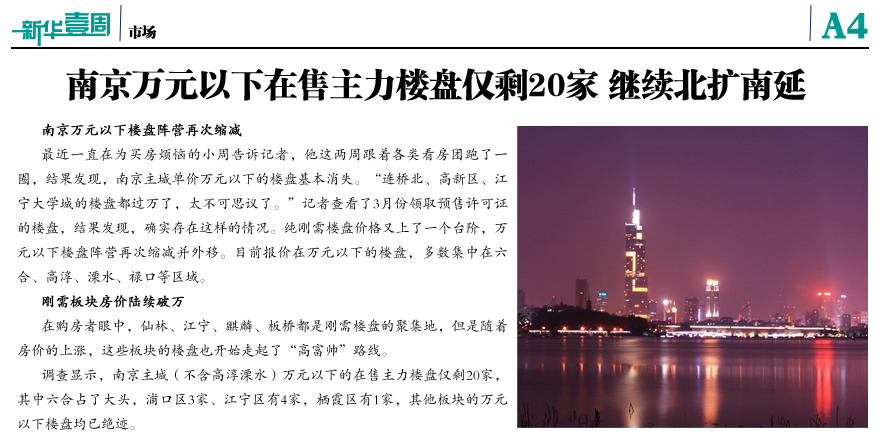 南京萬元以下在售主力樓盤僅剩20家