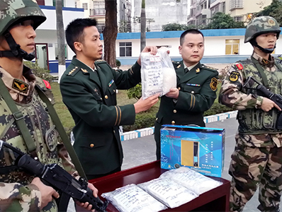 北海邊防支隊(duì)民警展示查獲的毒品冰毒