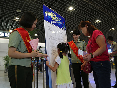 執(zhí)勤官兵向群眾宣傳禁毒知識(shí)