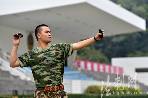 ????練兵場上空被投擲的防暴彈劃出一條條優(yōu)美的弧線。“八環(huán)、九環(huán)、十環(huán)……?!眻?bào)靶員響亮的聲音響徹練兵場。班長蔡錦彬投擲的防暴彈仿佛對靶心有向心力,一環(huán)比一環(huán)高;其他官兵也不甘示弱,剛剛創(chuàng)下的好成績不斷被刷新,戰(zhàn)士廖國勇猶如賽場上的一匹黑馬,憑著過硬的實(shí)力,一路過關(guān)斬將,奪得第一。(林宇華)
