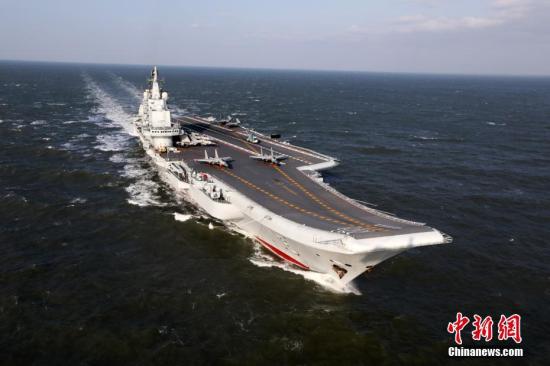 資料圖 中國(guó)人民解放軍海軍遼寧艦編隊(duì)赴西太平洋海域開(kāi)展遠(yuǎn)海訓(xùn)練。圖為遼寧艦正在航行。 中新社發(fā) 張凱 攝