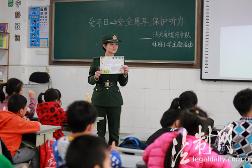 圖為邊防官兵為小學(xué)生們介紹愛護(hù)耳朵的知識(shí)