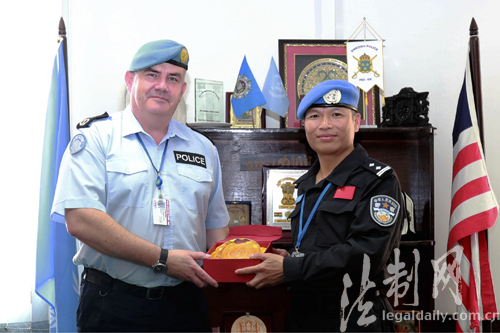 ????藍隊長向總警監(jiān)匯報了中國防暴隊編成、物資裝備、甄選考核以及抵達任務(wù)區(qū)后執(zhí)行維和勤務(wù)等情況,介紹了中國防暴隊在部隊正規(guī)化建設(shè)、治安形勢研判、后勤綜合保障等方面經(jīng)驗做法,并表示將恪守聯(lián)合國核心價值,堅決服從聯(lián)利團指揮鏈條,嚴格落實防暴辦下達的各項指令任務(wù),繼續(xù)保持和發(fā)揚中國維和警隊紀律嚴明、敢打硬仗的優(yōu)良傳統(tǒng)。