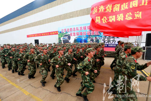 圖為江蘇邊防總隊(duì)后勤應(yīng)急保障拉動(dòng)演練隊(duì)員在緊急集結(jié)