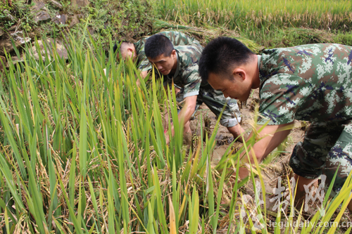 ????原標(biāo)題:金穗中的一抹綠 云南金平邊防開展“知民族風(fēng)俗 幫駐地農(nóng)忙”主題黨日活動