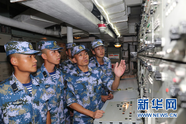 “目標(biāo)穩(wěn)定跟蹤!”“導(dǎo)彈飛行正常!”在海軍沈陽艦艦空導(dǎo)彈控制室內(nèi),一名肩扛“三道拐”的士官鎮(zhèn)定自若,不時(shí)上報(bào)口令。
