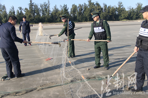 廣西企沙邊防派出所聯(lián)合海洋分局開展海上捕鳥網(wǎng)清除活動(dòng)