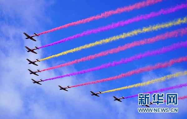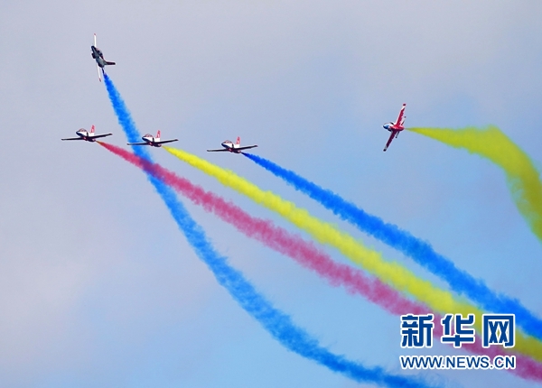 8月30日,“天之翼”飛行表演隊(duì)在空軍航空開(kāi)放活動(dòng)上進(jìn)行飛行表演。 新華社記者 王東明 攝