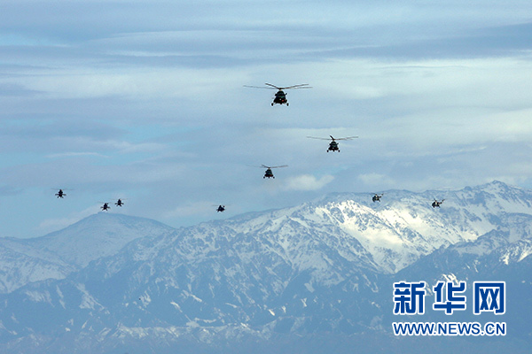 2018年5月25日,新疆軍區(qū)某陸航旅運(yùn)輸直升機(jī)一營在高海拔地區(qū)開展協(xié)同訓(xùn)練。 新華社發(fā)(吳世科 攝)