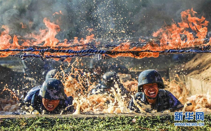海軍陸戰(zhàn)隊(duì)某旅偵察營(yíng)在三亞某訓(xùn)練場(chǎng)開展極限體能訓(xùn)練(11月21日攝)。新華社發(fā)(范旭東 攝)