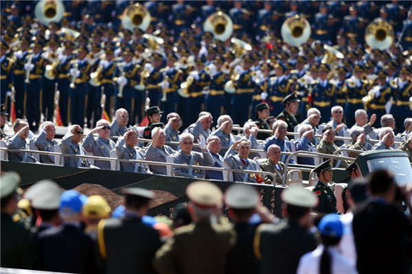 ????2015年9月3日,中國(guó)人民抗日戰(zhàn)爭(zhēng)暨世界反法西斯戰(zhàn)爭(zhēng)勝利70周年紀(jì)念大會(huì)在北京隆重舉行。這是抗戰(zhàn)老兵乘車方隊(duì)通過(guò)天安門廣場(chǎng)。新華社記者 王定昶 攝
