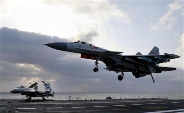 ????資料照片:殲15艦載戰(zhàn)斗機準(zhǔn)備在遼寧艦上著艦