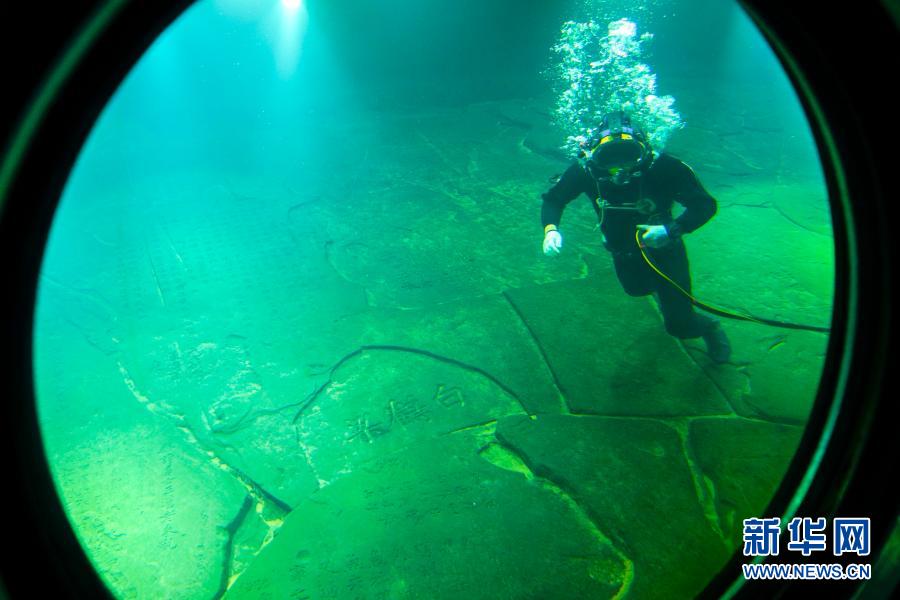 當(dāng)日,重慶涪陵白鶴梁水下博物館迎來(lái)了第三次閉館修繕后的首次潛水員水下清理作業(yè)。潛水員通過(guò)壓力艙,進(jìn)入水下40多米的白鶴梁題刻無(wú)壓容器罩中,重點(diǎn)清理水下燈具和燈罩、參觀廊道的觀察窗口玻璃,以及題刻本體上的泥沙。