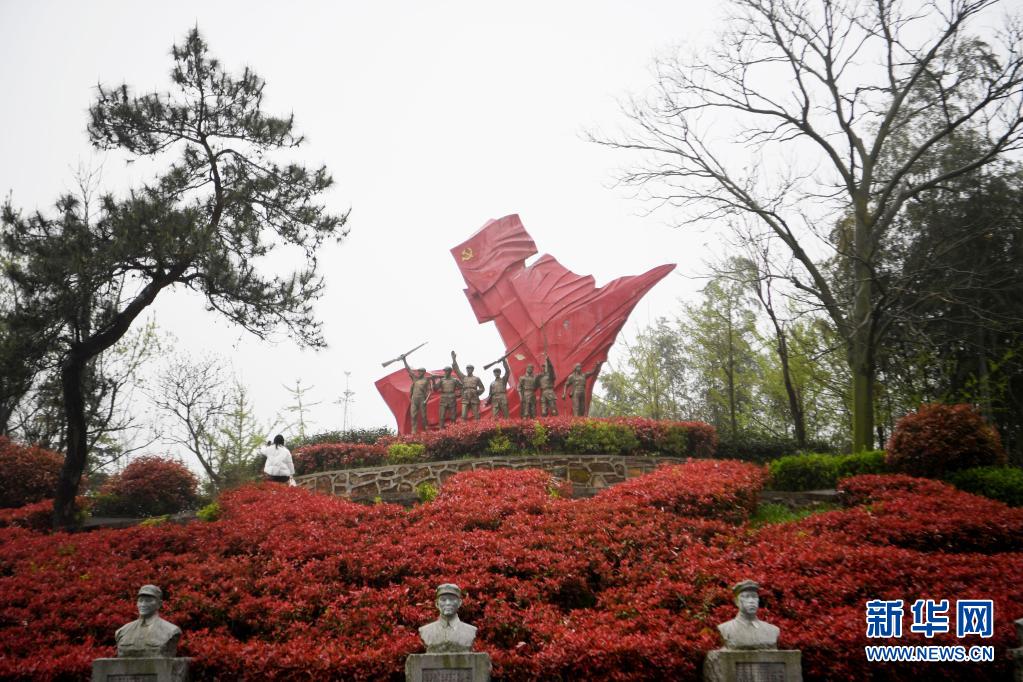4月2日,游客在大別山商城革命歷史紀(jì)念館外參觀。