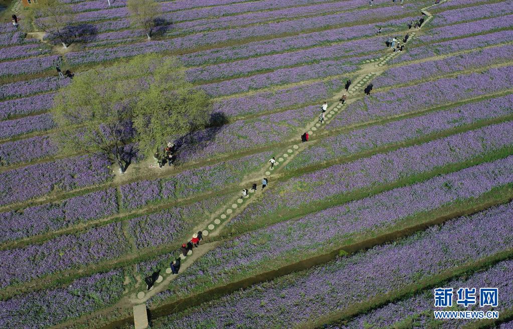4月5日,游人在江蘇省連云港市海州區(qū)月牙島景區(qū)賞花觀景(無(wú)人機(jī)照片)。