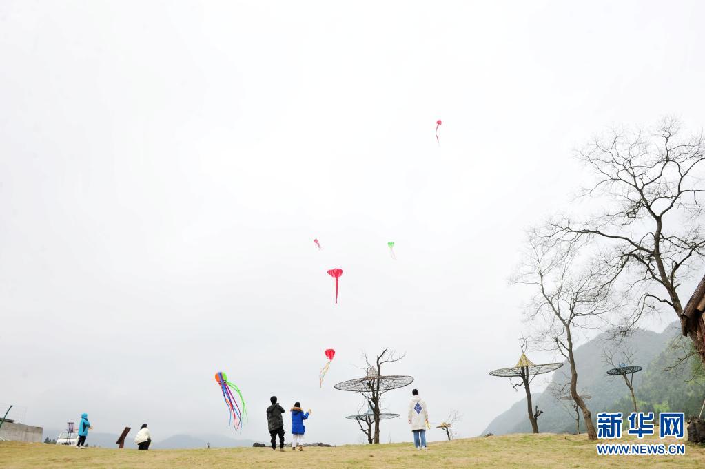 4月5日,游客在重慶市酉陽土家族苗族自治縣疊石花谷生態(tài)旅游景區(qū)放風箏。