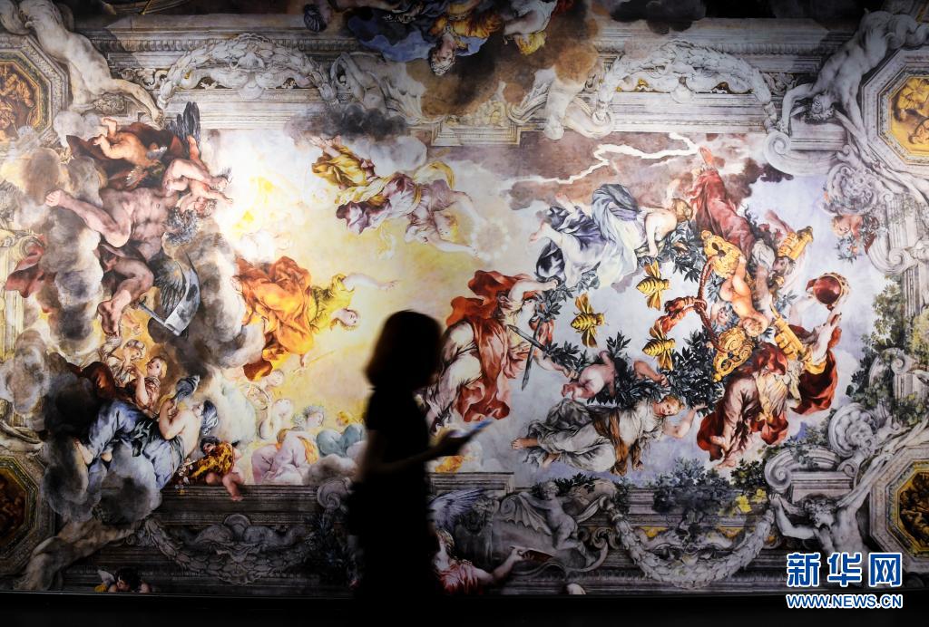 5月3日,觀眾走過(guò)展出的彼得羅·達(dá)·科爾托納壁畫(huà)作品《神意的勝利》復(fù)制品。