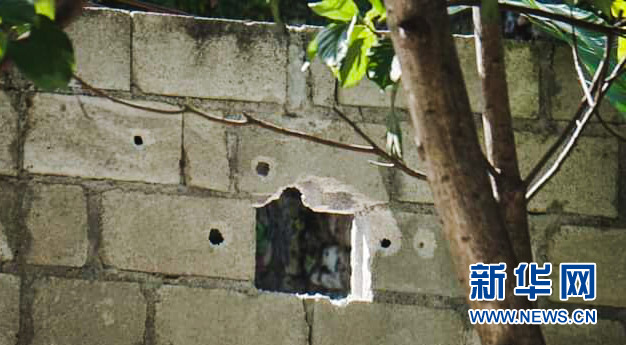 7月7日,在海地太子港,海地總統(tǒng)莫伊茲住所外墻上的彈孔清晰可見。