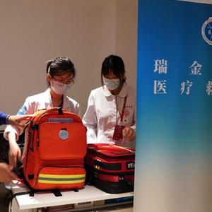 上海交通大學(xué)醫(yī)學(xué)院附屬瑞金醫(yī)院的醫(yī)護人員擔(dān)當(dāng)志愿者,在中共一大紀(jì)念館設(shè)立醫(yī)療救治點,提供醫(yī)療保障任務(wù)(7月11日攝)。