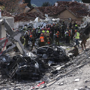 3月1日,救援人员在耶路撒冷西部城镇贝特谢梅什的导弹袭击现场工作。