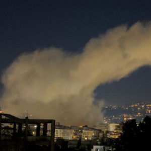 3月2日凌晨,黎巴嫩贝鲁特南郊在遭受以军打击后升起烟尘。