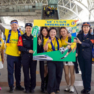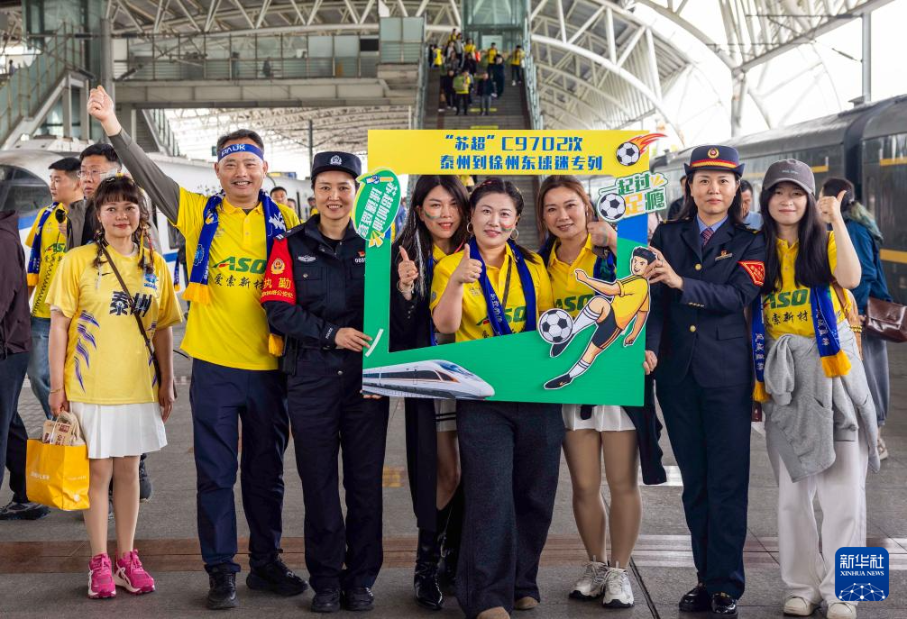 4月18日,2026江苏省城市足球联赛泰州队客场挑战徐州队,为方便球迷观赛,铁路部门开行泰州站往返徐州东站的“苏超”球迷高铁专列。