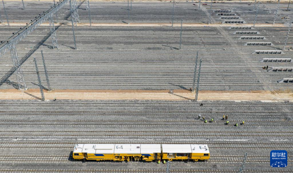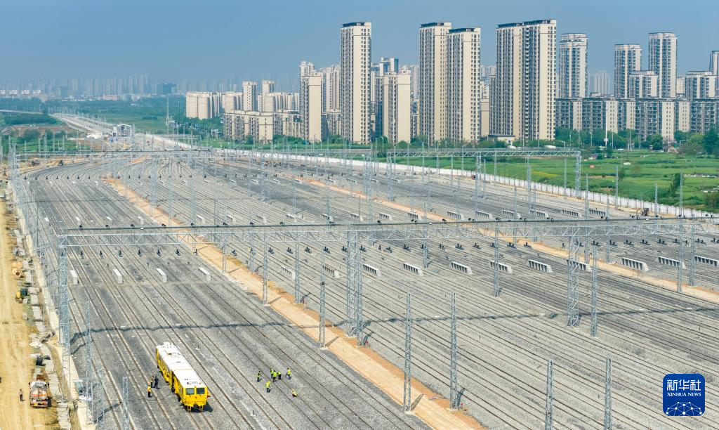 这是4月19日拍摄的安徽合肥动车运用所建设现场(无人机照片)。