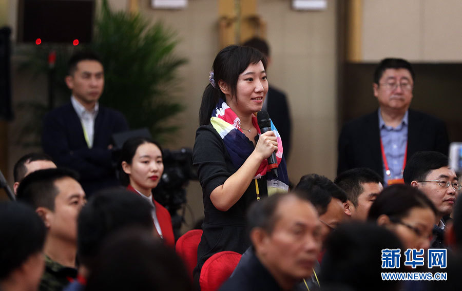 ??? 10月20日,十九大新聞中心舉辦集體采訪活動(dòng),主題為“實(shí)施創(chuàng)新驅(qū)動(dòng)發(fā)展戰(zhàn)略”。圖為香港鳳凰衛(wèi)視記者提問。新華網(wǎng) 郝廣鵬攝