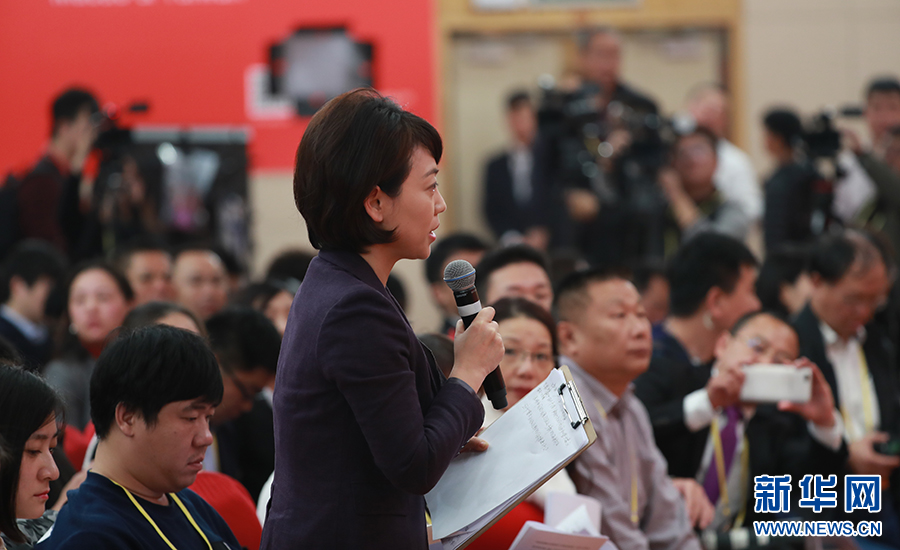10月26日上午10:00,中國(guó)共產(chǎn)黨第十九次全國(guó)代表大會(huì)新聞發(fā)言人在梅地亞賓館二層新聞發(fā)布廳召開專題新聞發(fā)布會(huì),請(qǐng)有關(guān)方面負(fù)責(zé)人解讀十九大報(bào)告,并回答記者關(guān)心的問題。圖為中央電視臺(tái)記者提問。新華網(wǎng) 翟子赫 攝