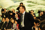 溫家寶總理向中外記者揮手致意