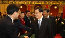 全國(guó)政協(xié)十一屆五次會(huì)議開(kāi)幕 胡錦濤等到會(huì)祝賀