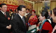 全國(guó)兩會(huì)少數(shù)民族代表委員茶話會(huì)舉行 胡錦濤等出席