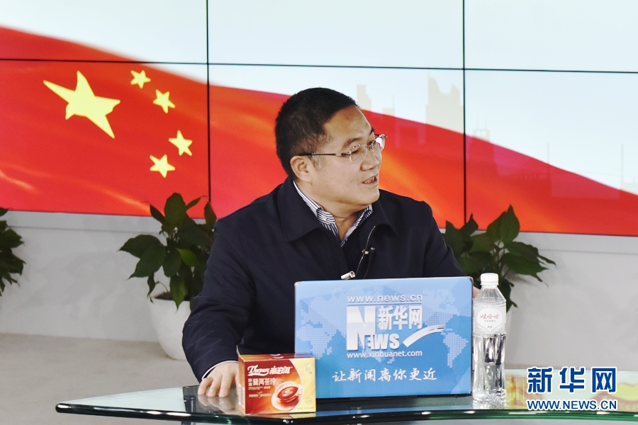 2016年3月12日,全國人大代表、正邦集團董事局主席、總裁林印孫做客新華網(wǎng)兩會訪談直播間。圖為林印孫在回答主持人提問。新華網(wǎng) 郭小天 攝