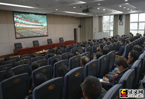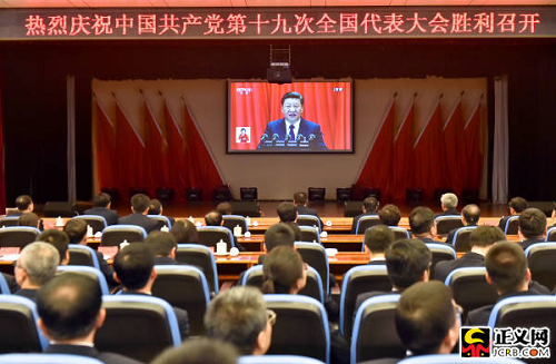 中國(guó)共產(chǎn)黨第十九次全國(guó)代表大會(huì)18日上午在人民大會(huì)堂開(kāi)幕。習(xí)近平總書(shū)記代表第十八屆中央委員會(huì)向大會(huì)作了題為《決勝全面建成小康社會(huì) 奪取新時(shí)代中國(guó)特色社會(huì)主義偉大勝利》的報(bào)告。國(guó)家檢察官學(xué)院黨員干部集體收看收聽(tīng)了開(kāi)幕式。徐鵬宇攝