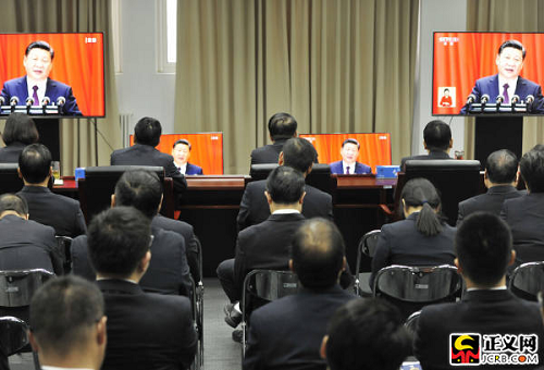 正義網(wǎng)北京10月18日電(記者王治國(guó) 徐日丹)今天上午,舉世矚目的中國(guó)共產(chǎn)黨第十九次全國(guó)代表大會(huì)在人民大會(huì)堂開(kāi)幕。習(xí)近平總書(shū)記代表第十八屆中央委員會(huì)向大會(huì)作了題為《決勝全面建成小康社會(huì) 奪取新時(shí)代中國(guó)特色社會(huì)主義偉大勝利》的報(bào)告。最高人民檢察院組織機(jī)關(guān)全體黨員干部收聽(tīng)收看了大會(huì)實(shí)況轉(zhuǎn)播,各內(nèi)設(shè)機(jī)構(gòu)和直屬事業(yè)單位在第一時(shí)間召開(kāi)座談會(huì),交流學(xué)習(xí)十九大報(bào)告心得體會(huì)。大家表示,要認(rèn)真學(xué)習(xí)貫徹黨的十九大精神,不忘初心,牢記使命,高舉中國(guó)特色社會(huì)主義偉大旗幟,忠誠(chéng)履行法律監(jiān)督職責(zé),努力開(kāi)創(chuàng)檢察事業(yè)新局面,為決勝全面建成小康社會(huì),奪取新時(shí)代中國(guó)特色社會(huì)主義偉大勝利,實(shí)現(xiàn)中華民族偉大復(fù)興的中國(guó)夢(mèng)貢獻(xiàn)檢察力量。