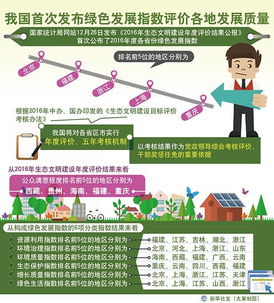 圖表:我國首次發(fā)布綠色發(fā)展指數(shù)評(píng)價(jià)各地發(fā)展質(zhì)量 新華社發(fā) 大巢制圖