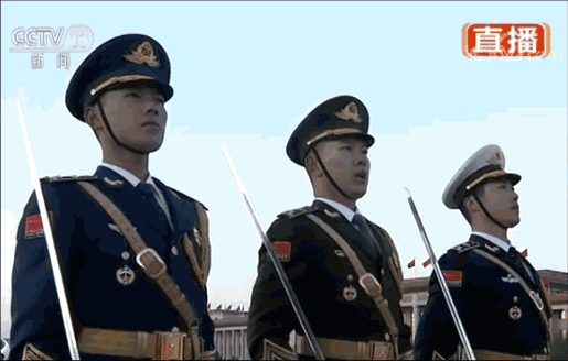 走在國旗手與護旗隊中間的分隊長,此次從一名增加到了三名,他們分別身著陸??哲姸Y服,配掛指揮刀,代表解放軍全軍,負責發(fā)出升國旗口令。
