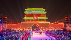 其實第一個方案不是在城樓上,而是在第一輔橋這,我們看完以后覺得不行,感覺這八名禮號手應該站在更高點上,想來想去,我們感覺應該在天安門城樓上。因為我們想,站在天安門城樓上,就是站在五千年厚重的文化積淀上,去奏響新時代的號角。