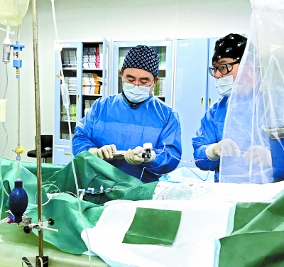 北京友誼醫(yī)院心血管中心醫(yī)生丁曉松在手術(shù)中搶救急性心梗患者。