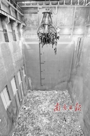 抓斗將發(fā)酵的垃圾抓起,準備送入焚燒爐。