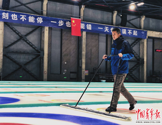 因冰壺比賽對冰面要求極高,能完成冰壺場地掃冰、制冰的劉博強任務(wù)繁重,在運動隊訓練密集時,他常在冰場一待就是一天。但他“要求”自己得像打了雞血一般,“我粗略打聽了一下,能把冰壺冰面做好的制冰師,全國不超過兩位數(shù),所以,我盼著參與冬奧賽時的冰面維護,要能實現(xiàn),我人生至高點也就在那兒了吧?!?/p>