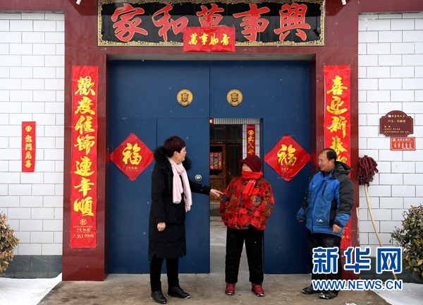 新春剛過(guò),瑞雪降中原。一片銀裝素裹間,一個(gè)暗紅色的門(mén)樓上“向陽(yáng)莊村”幾個(gè)金色大字格外醒目,門(mén)樓下葛樹(shù)芹正一邊掃雪一邊大聲地和村民們聊著天,歡聲笑語(yǔ)間滿(mǎn)滿(mǎn)的是幸福年味。
