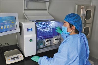 南京醫(yī)科大學(xué)第二附屬醫(yī)院醫(yī)生正在使用智能化提取設(shè)備提取糞菌。受訪者供圖