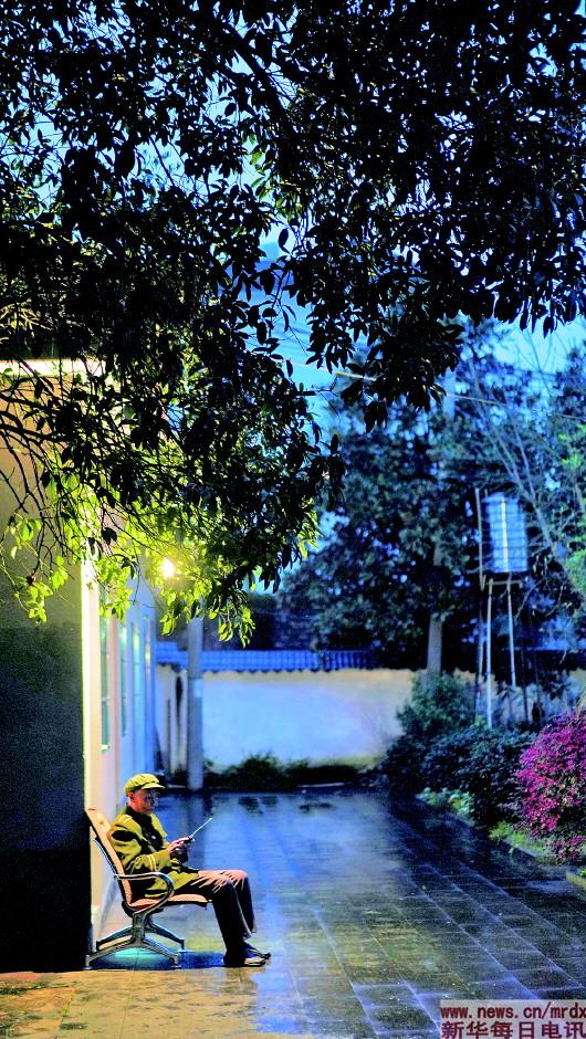 3月27日傍晚,程樟柱在紀(jì)念館內(nèi)聽(tīng)收音機(jī)。