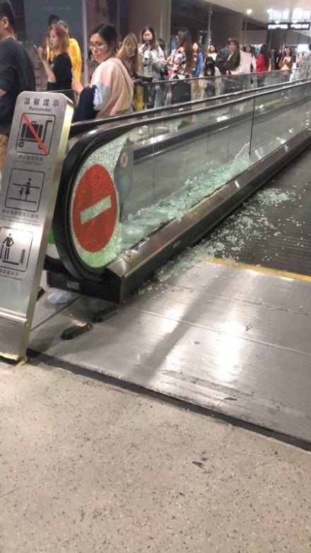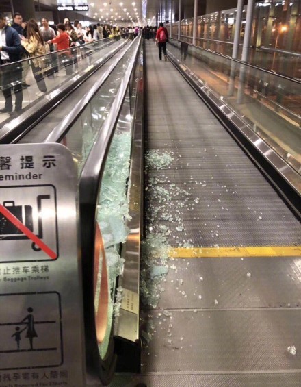 從許多微博大V和網(wǎng)友貼出的“受傷”步行自動扶梯照片來看,步行扶梯玻璃護欄碎了一地,一旁正是人山人海的接機粉絲。