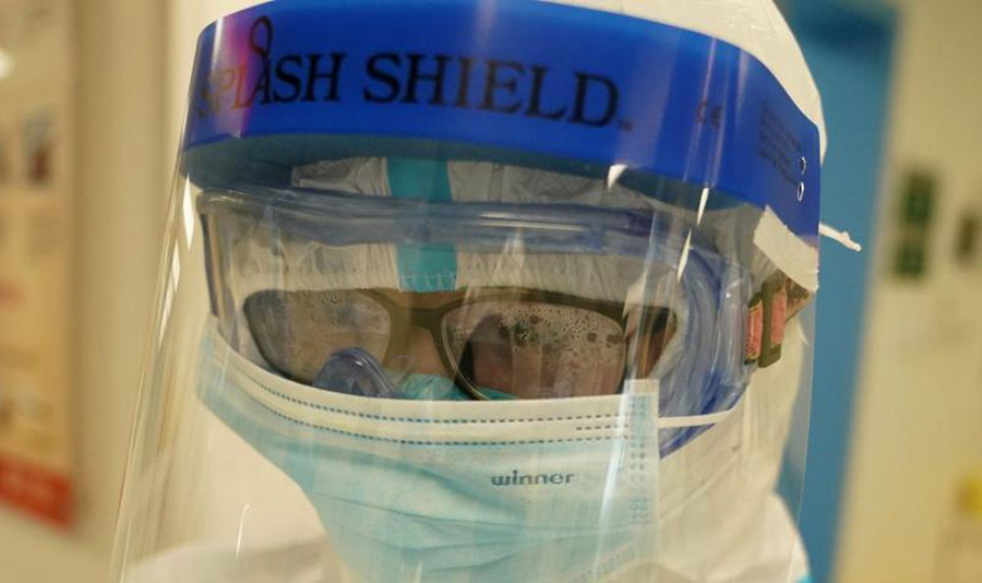 “全副武裝”的護(hù)士漆思河眼鏡里產(chǎn)生了大量水汽。新華社記者王毓國 攝